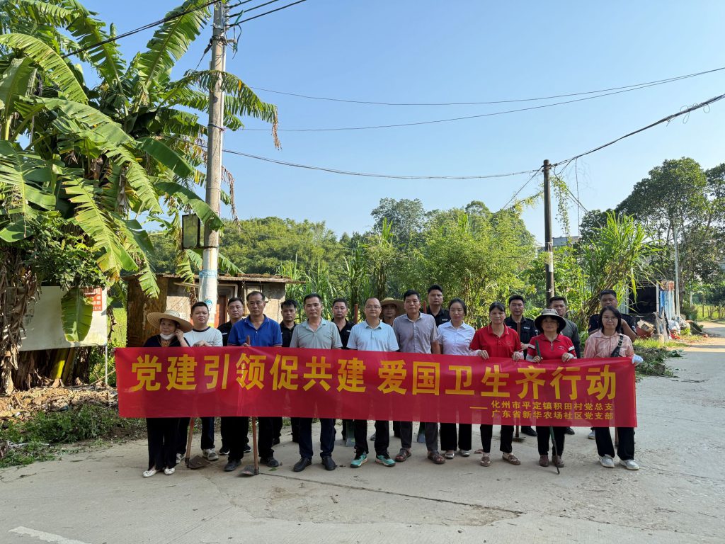 近日,为扎实推进环境整治工作,有效预防登革热、基孔肯雅热等蚊媒传染病传播,切实保障农场辖区职工群众的健康安全,新华农场社区党支部与化州市平定镇积田村党总支在农场7队开展以“清垃圾、清积水、灭蚊虫”为主题党日活动。