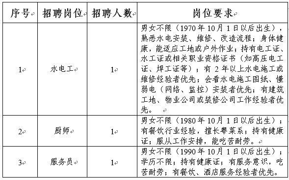 广东农垦曙光农场有限公司,创建于1952年,总部位于电白区北部中心区沙琅镇,现有国有土地11.38万亩,下辖两个直属单位、6个生产作业区,场部环境优美,交通便利。现面向社会公开招聘水电工1人、厨师1人、服务员1人,现将有关事项公告如下: