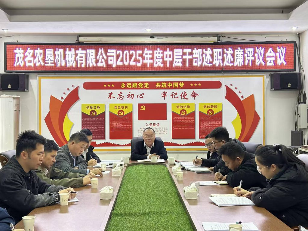 为回顾2025年工作,凝聚2026年奋进力量,1月26日,茂名农垦机械有限公司召开2025年度中层干部述职述廉评议工作会议。公司领导班子成员及全体管理人员参加会议,会议由党委委员、董事、副总经理、工会主席梁明主持。