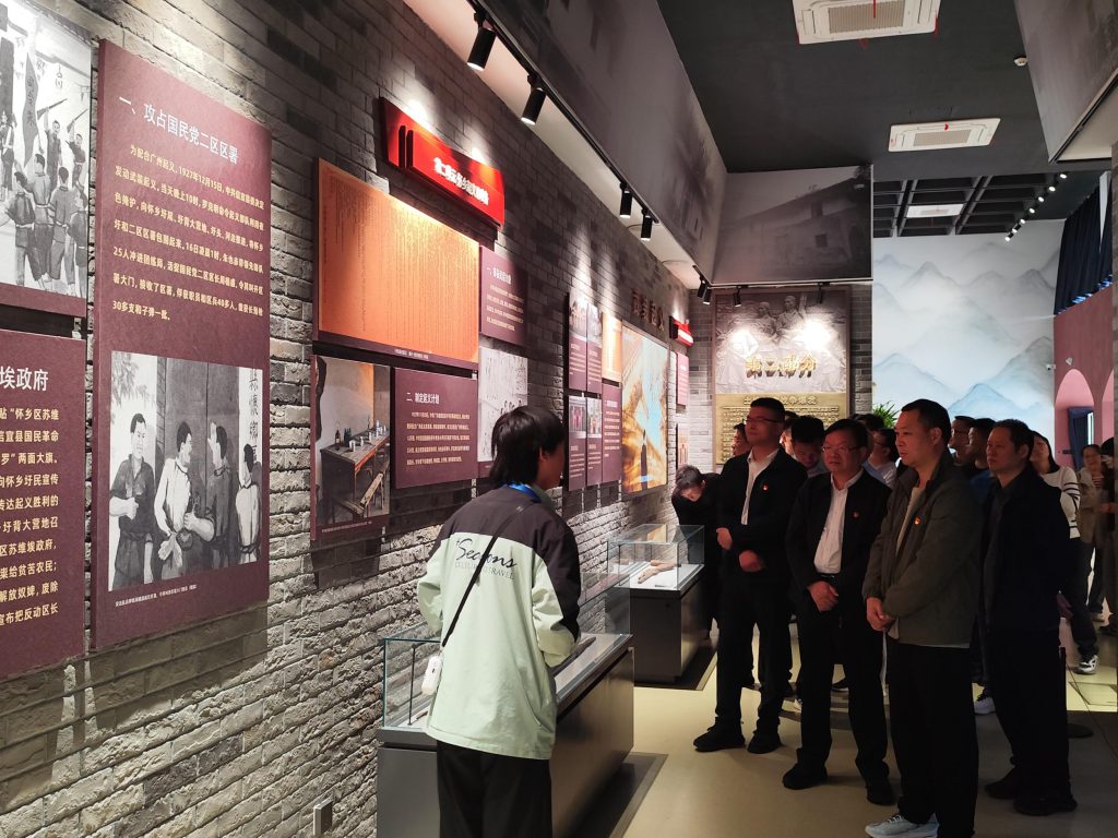 活动首站,党员及职工来到位于怀乡镇的广东南路革命信宜教育基地。在庄严肃穆的展陈厅内,大家怀着崇敬的心情,认真聆听讲解员讲述那段烽火连天的岁月。通过一幅幅珍贵的历史图片、一件件饱经沧桑的革命文物以及生动的场景复原,党员们详细回顾了大革命时期至解放战争时期南路地区的革命斗争历程,大家深受震撼。这不仅是一次对历史的回望,更是一次党性的锤炼,激励着每一位党员干部不忘初心、牢记使命,将革命先烈的坚定信念转化为干事创业的强大动力。
