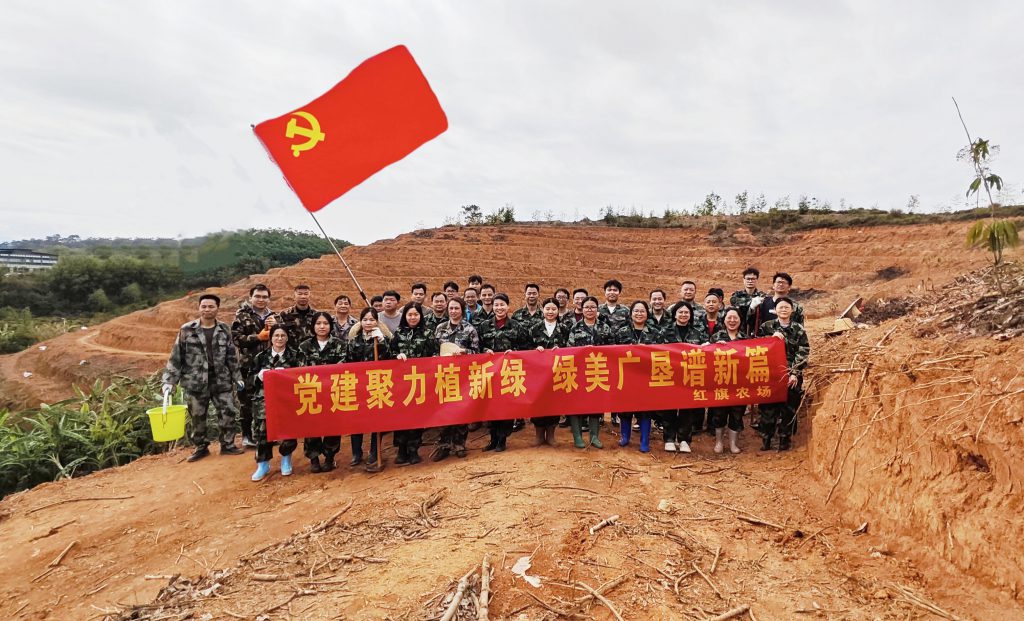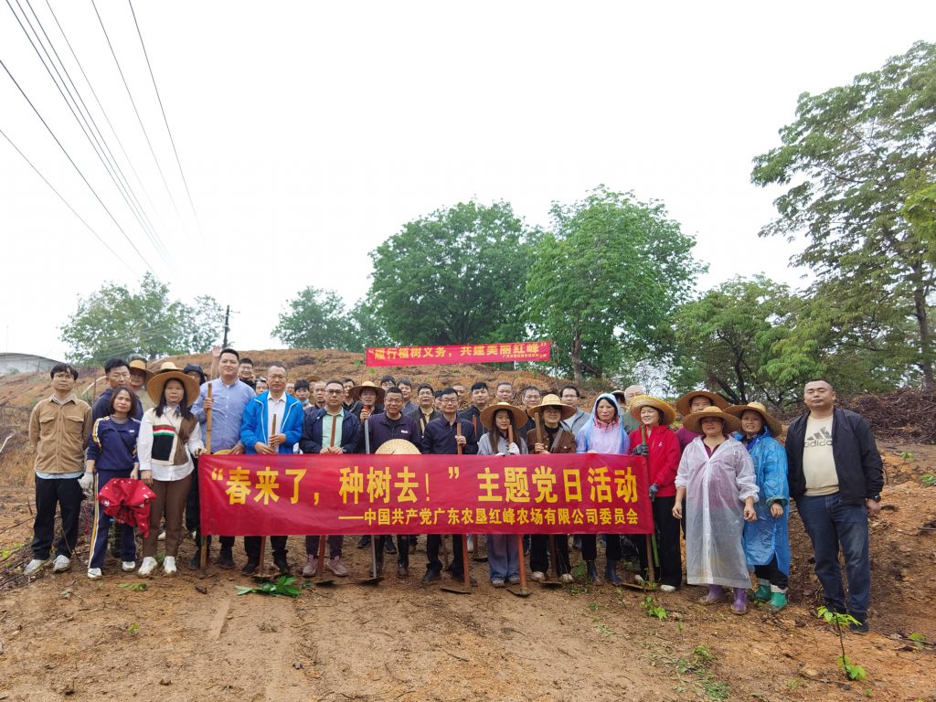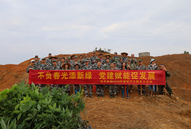 红旗农场以“党建聚力植新绿,绿美广垦谱新篇”为主题,组织党员干部前往4队9号山,让党旗在种植一线高高飘扬,以党建引领生态发展,用实际行动绘就农场发展新画卷。