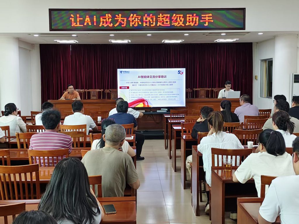 本次培训特邀中国电信茂名分公司两位资深专业工程师前来授课。培训过程中,两位讲师紧密结合农场工作实际与日常办公需求,聚焦公文写作、PPT 制作、图片设计等高频工作场景,由浅入深、通俗易懂地讲解AI智能体基础操作方法、核心功能应用及实用技巧。讲课内容既专业严谨又接地气,摒弃晦涩难懂的专业术语,让全体学员快速理解AI智能体的核心逻辑与使用要点。理论讲解结束后,培训现场设置互动交流环节,讲师们耐心解答学员们提出的各类实操问题,针对大家在工作中遇到的 AI 应用困惑逐一进行指导,手把手帮助学员掌握操作要领,现场学习氛围浓厚、互动热烈。